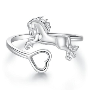 Srebrny Pierścionek - Koń - Serce