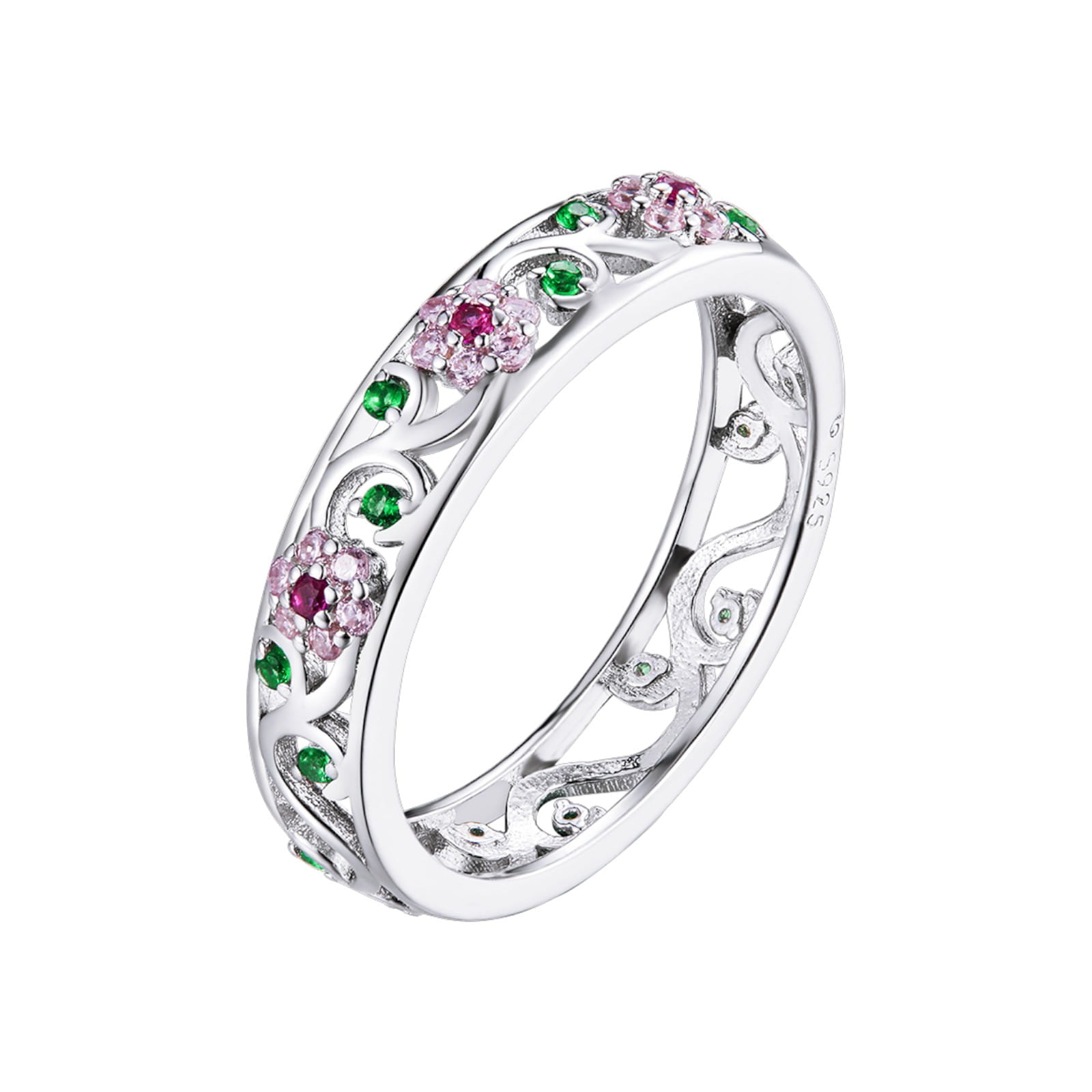 Srebrny Pierścionek - Kwiatek Liście