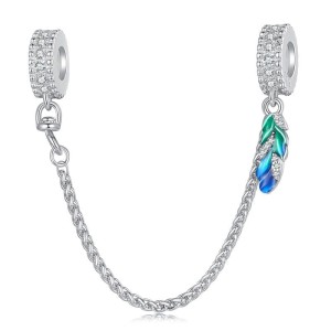 Charms do Bransoletki Modułowej - Pióro - Łańcuszek Zabezpieczający