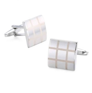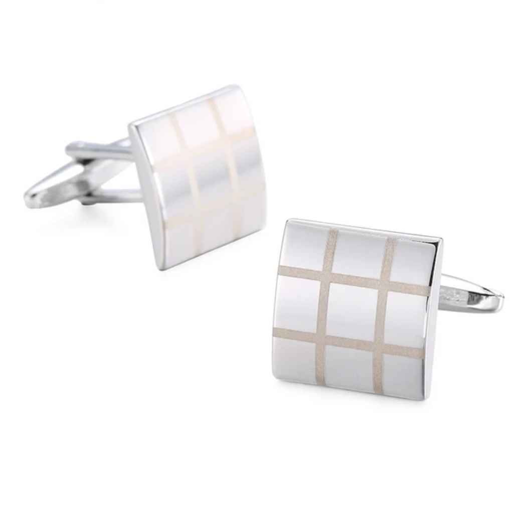Spinki Stalowe - Prostokąt - Kratka